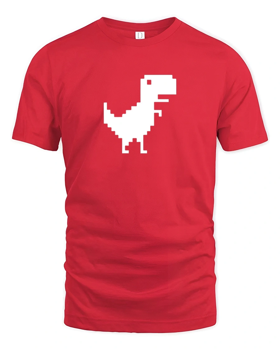 Pixel Dinosaur Offline Chrome Dino Funny Retro Gaming T Shirt - red t-shirt on white background