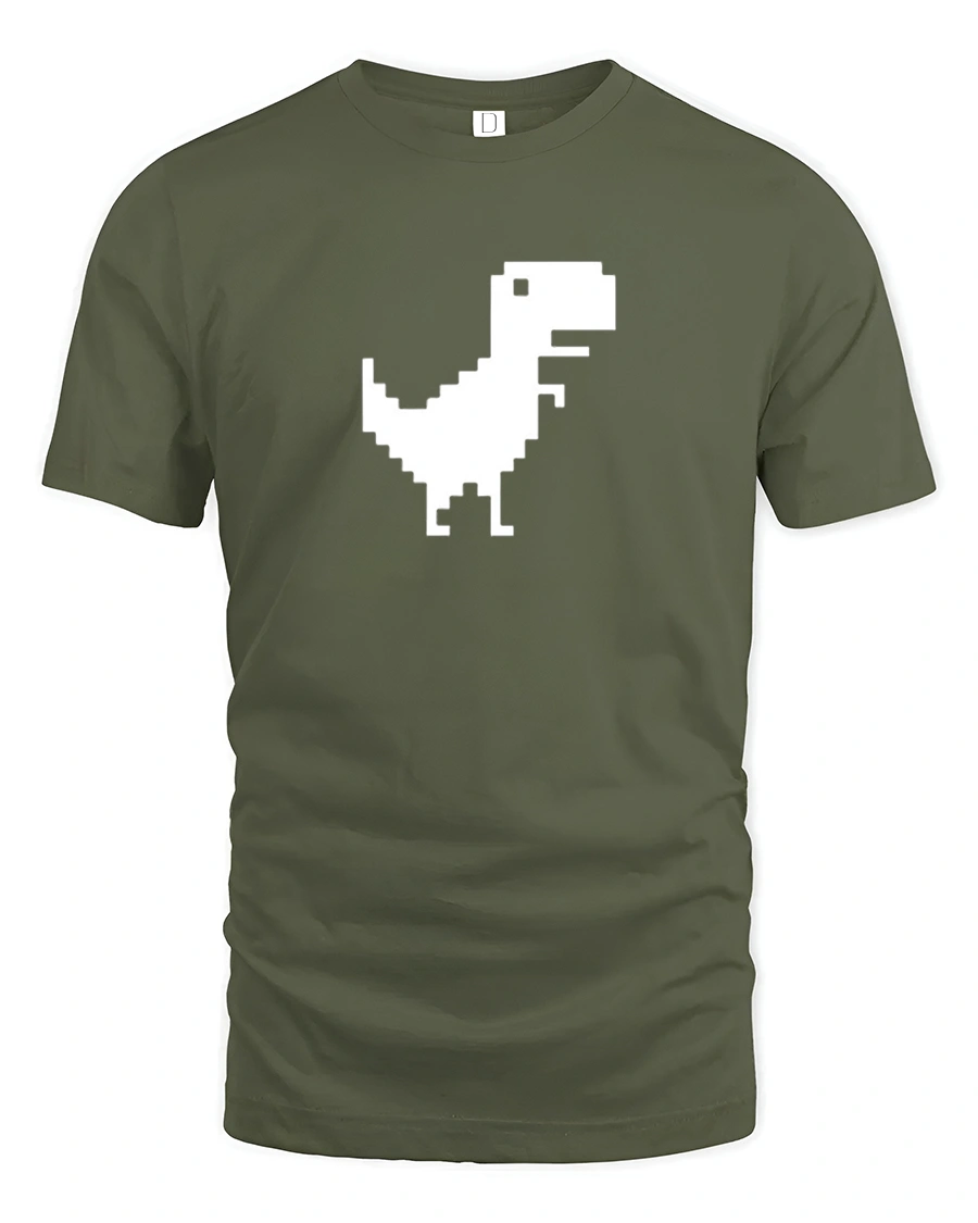 Pixel Dinosaur Offline Chrome Dino Funny Retro Gaming T Shirt - military green t-shirt on white background