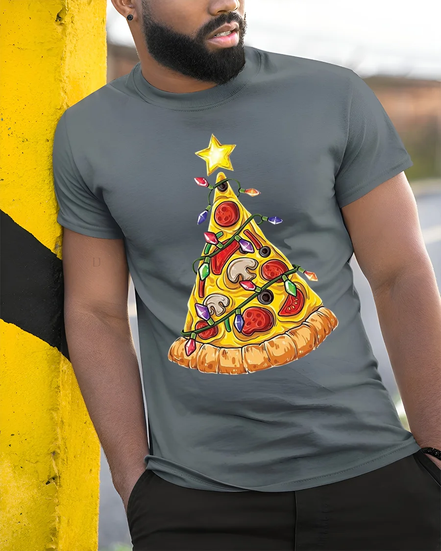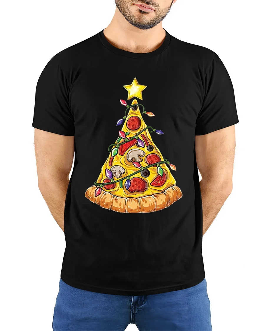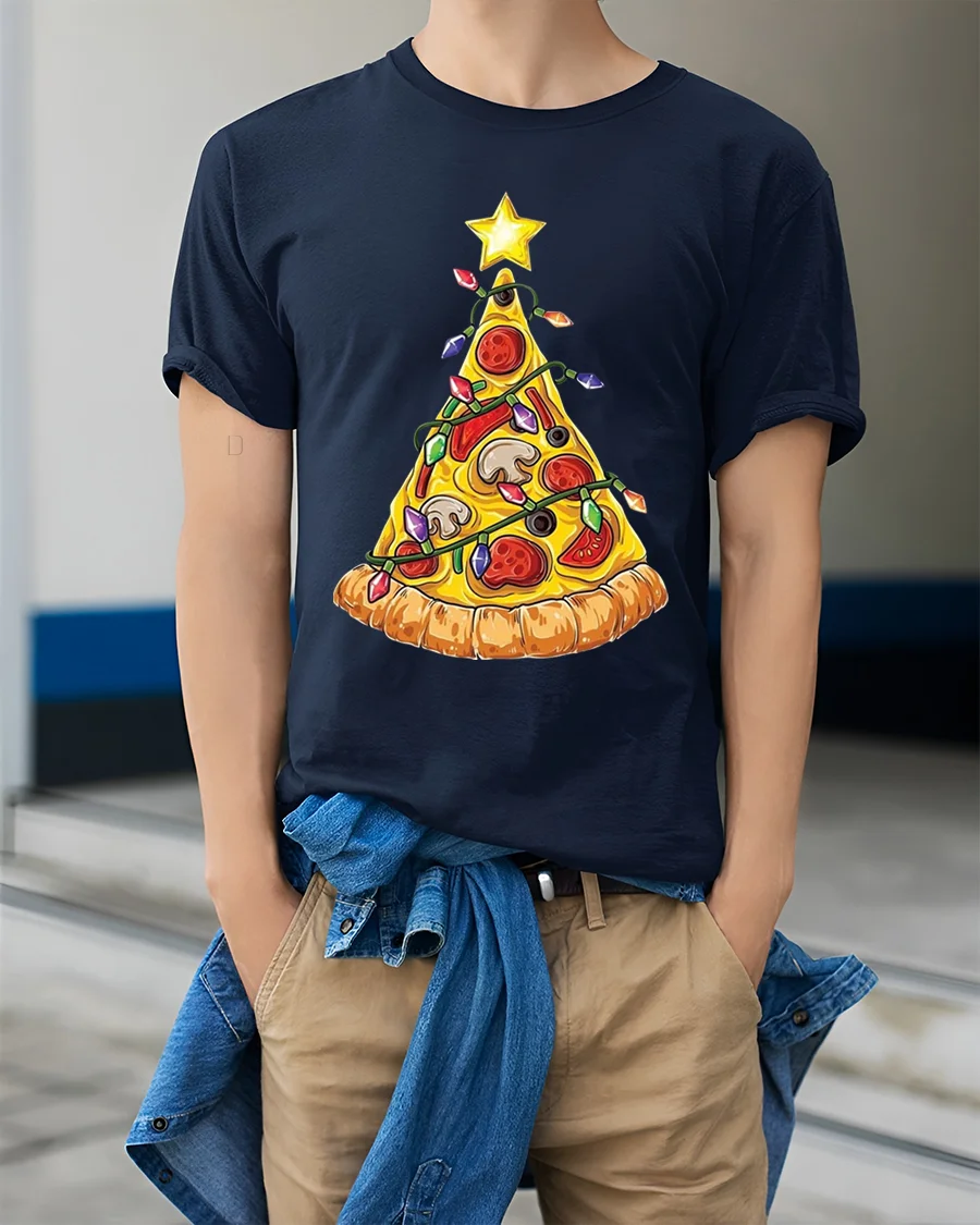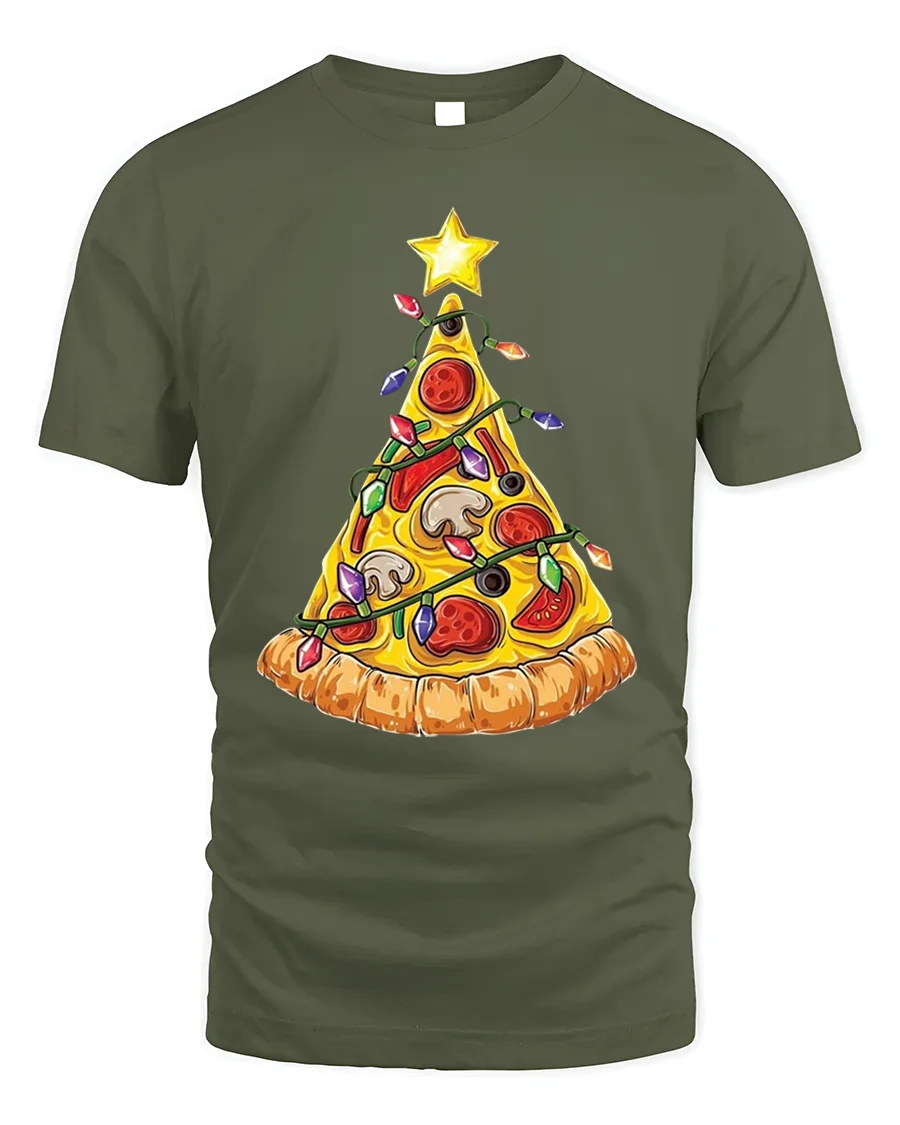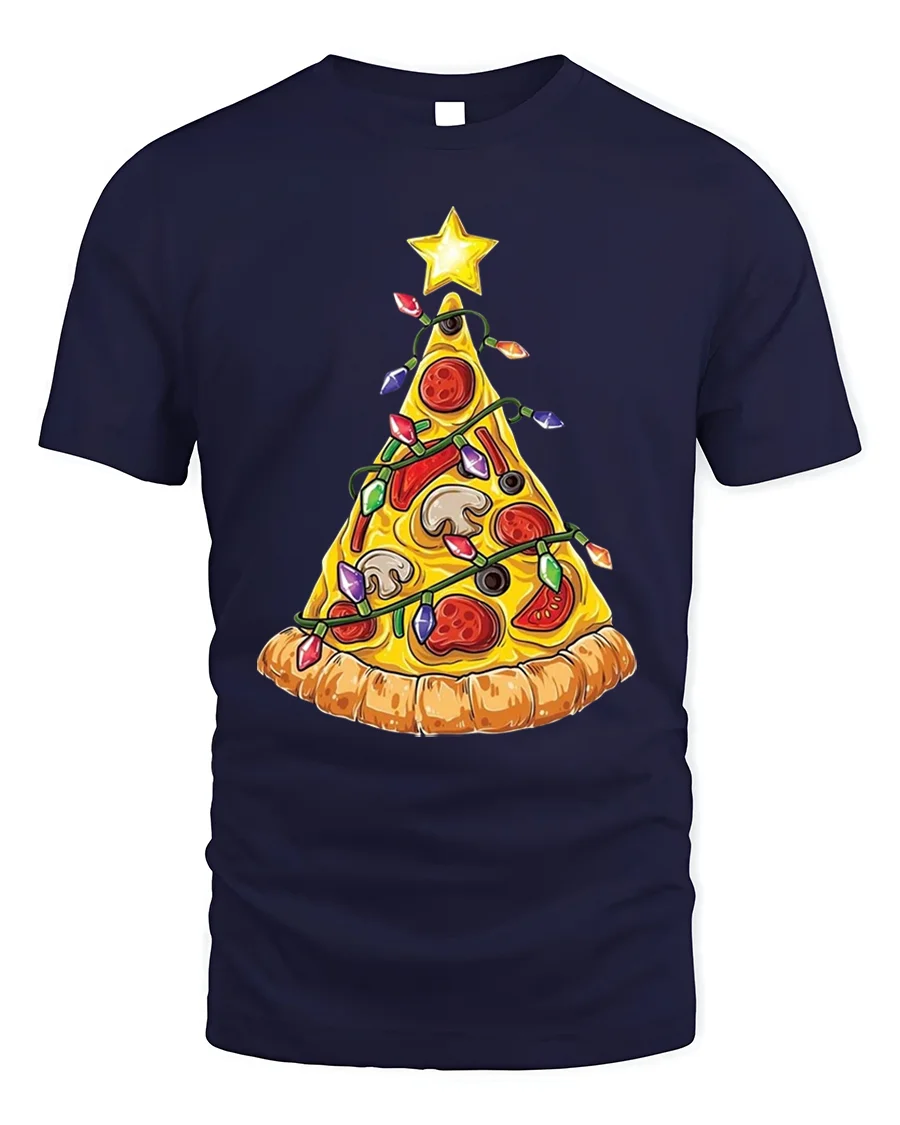 Slice up some holiday cheer with our hilarious Pizza Christmas Tree T-shirt! This deliciously festive tee features a classic pizza slice cleverly decorated like a Christmas tree, complete with colorful lights, ornaments, and topped with a shining star. It’s the perfect blend of savory fun and holiday spirit, making it a unique and amusing addition to your seasonal wardrobe. Made from soft, comfortable material, this t-shirt is ideal for all your holiday gatherings and casual wear.