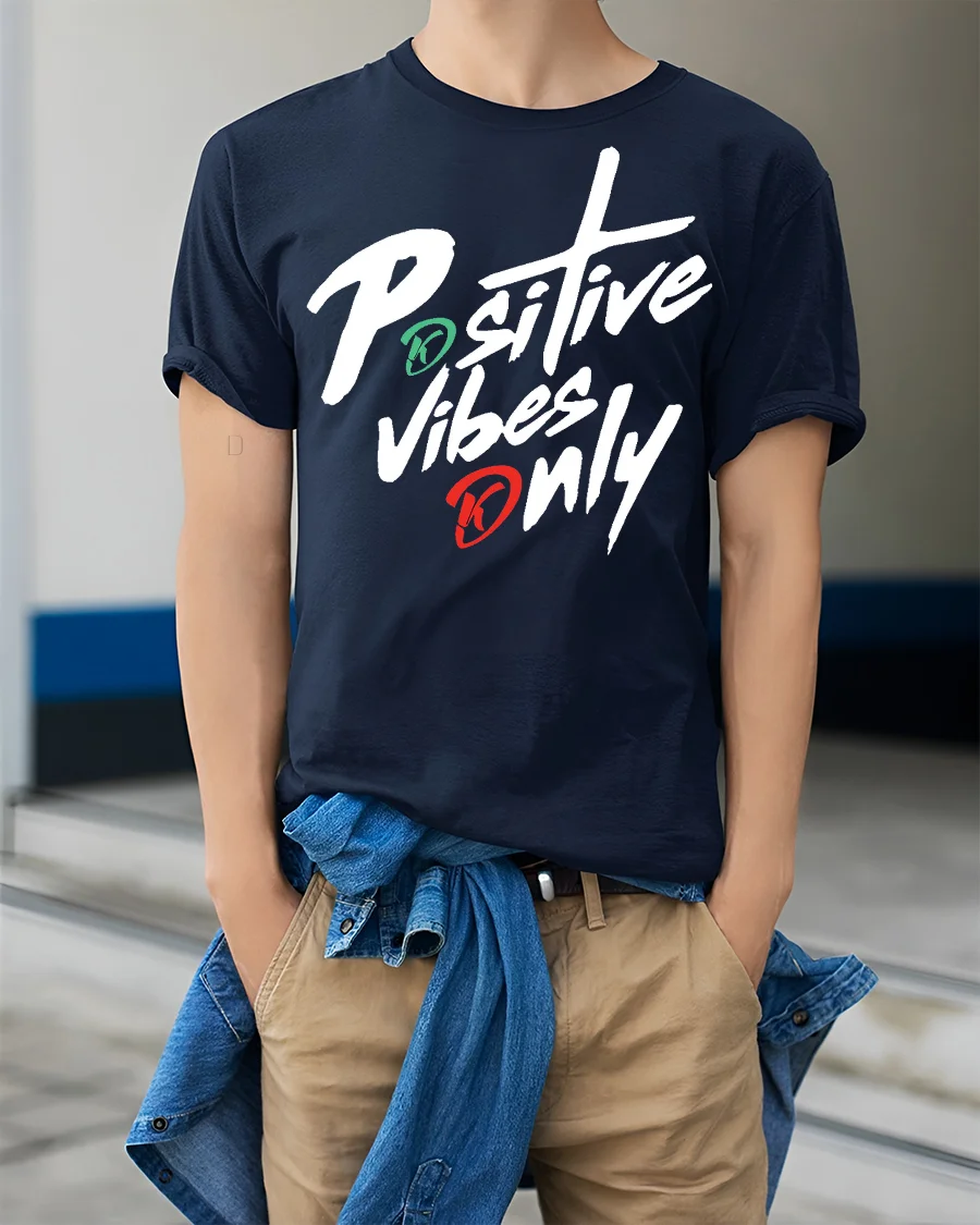 Positive Vibes Only Bold Script Motivational T Shirt delivers a strong and uplifting message with a stylish handwritten design.