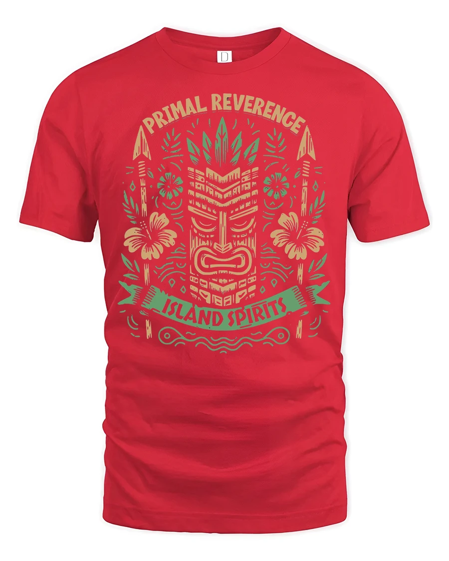 Primal Reverence Island Spirits Tiki Graphic T Shirt Tee - red t-shirt on white background