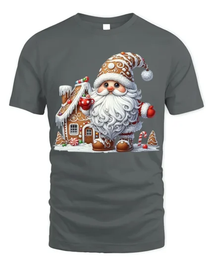 Gingerbread Santa T-Shirt Cute Christmas Cookie House Tee