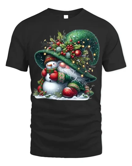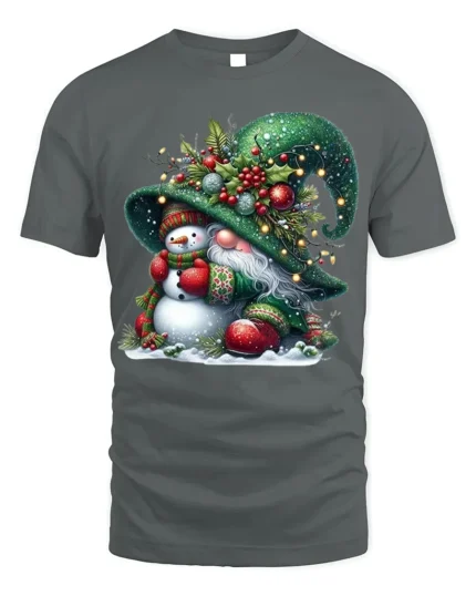 Cute Snowman Gnome With Green Hat Christmas Holiday T-Shirt