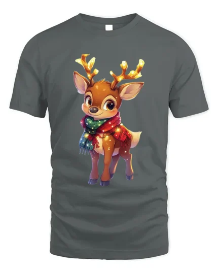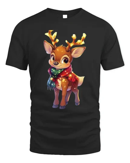 Cute Reindeer Christmas T-Shirt Festive Holiday Lights Deer Tee