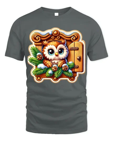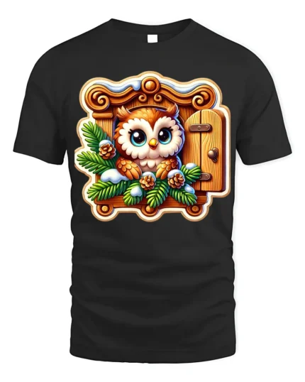 Cute Winter Owl in Wooden Window Christmas Scene T-Shirt