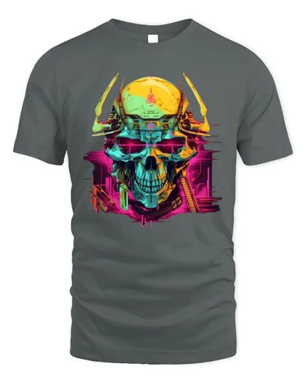 Neon Cyber Skull Tech Warrior Graphic T-Shirt