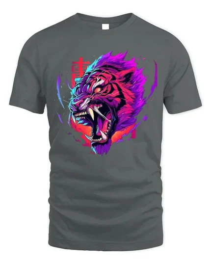 Neon Cyberpunk Tiger Fierce Attack Colorful Artwork Graphic T-Shirt
