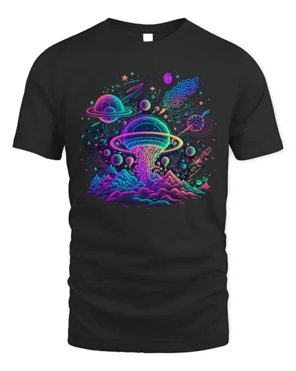 Psychedelic Neon Galaxy Cosmic Planet T-Shirt