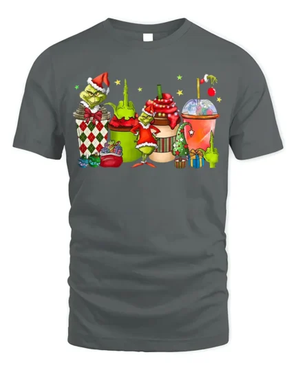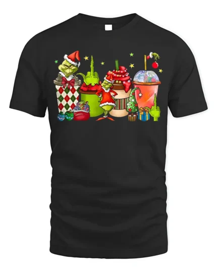 Funny Green Coffee Cups Christmas Holiday Vibes T-Shirt