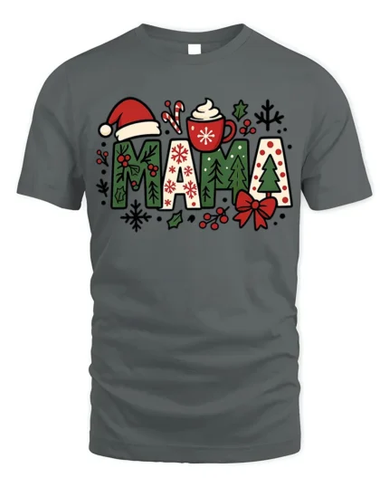 Mama Christmas T-Shirt Funny Holiday Coffee Santa Hat Tee