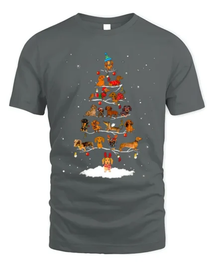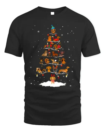 Dachshund Dog Christmas Tree Lights Funny Holiday T-Shirt