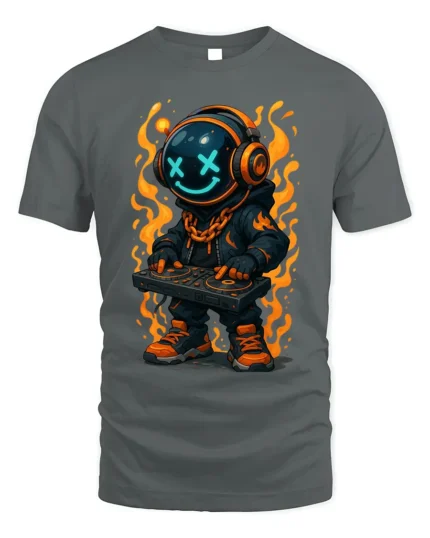Flaming DJ Astronaut Graphic T-Shirt Cool Music Streetwear Tee