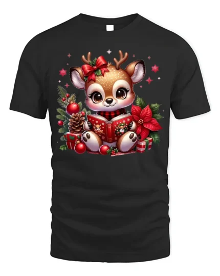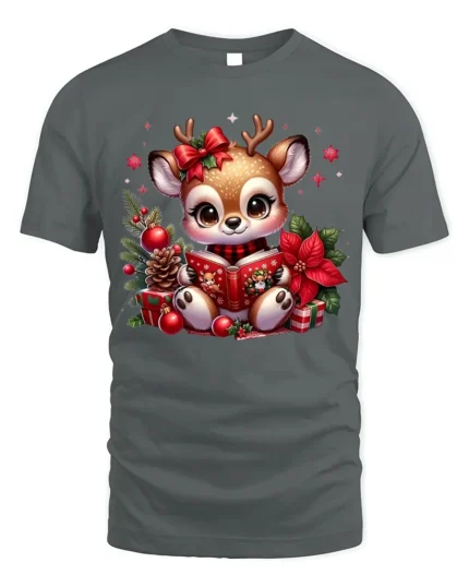 Cute Reindeer Reading Book Christmas T-Shirt Funny Holiday Tee