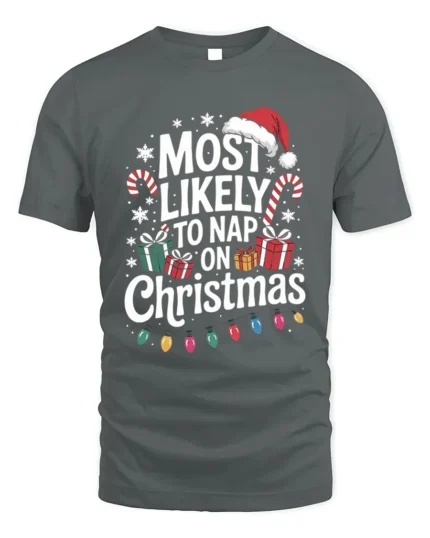 Most Likely To Nap On Christmas T-Shirt Funny Holiday Tee