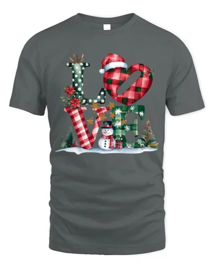 LOVE Christmas T-Shirt Snowman Santa Hat Funny Holiday Tee
