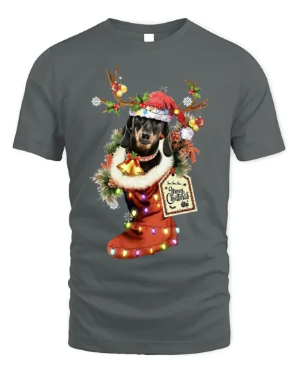 Cute Dachshund Dog Christmas Boot Lights Graphic T-Shirt