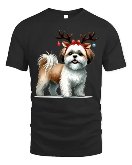 Cute Shih Tzu Christmas T-Shirt Funny Holiday Reindeer Tee