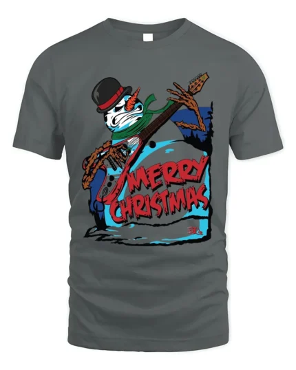 Rock Guitar Snowman Christmas T-Shirt Funny Holiday Music Tee