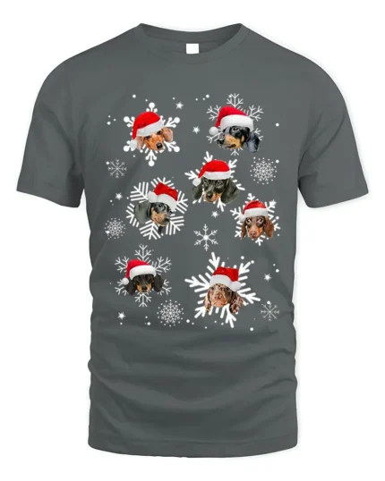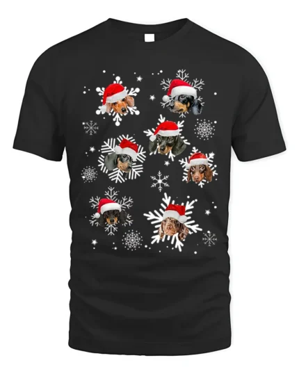 Cute Dachshund Dogs Santa Snowflakes Christmas T-Shirt