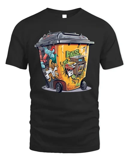 Funny Cartoon Trash Bin Street Art Graphic T-Shirt