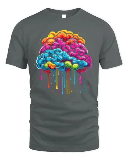 Colorful Melting Brain Splash Neon Art Creative Graphic T-Shirt
