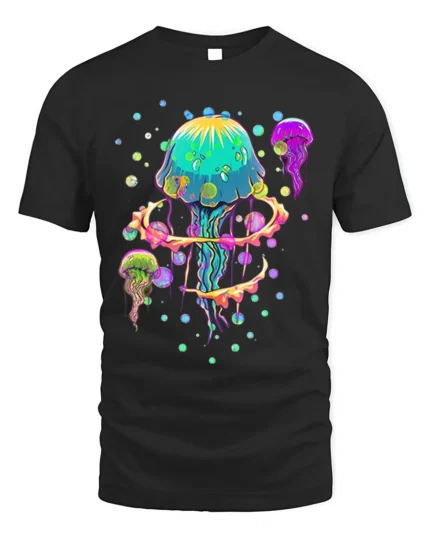 Psychedelic Jellyfish Ocean Art Neon Glow Graphic T-Shirt