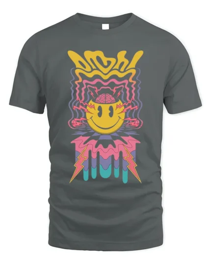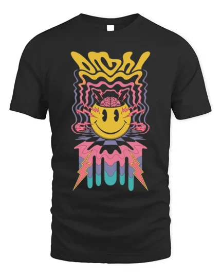 Psychedelic Smiley Face Lightning Art Graphic T-Shirt