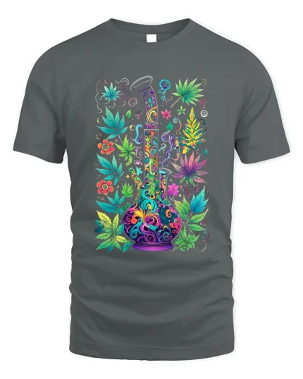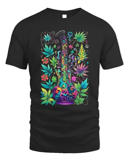 Psychedelic Bong and Leaf Art Graphic T-Shirt Unisex Style