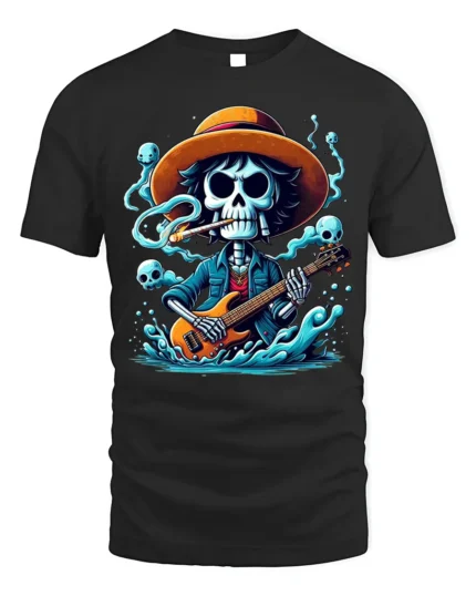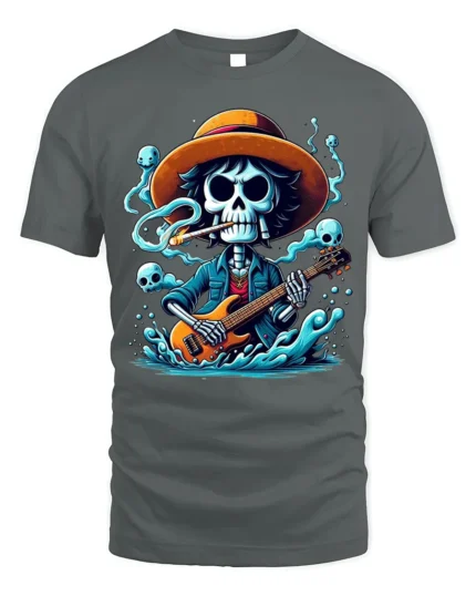Cool Skeleton Guitarist Smoking Art T-Shirt