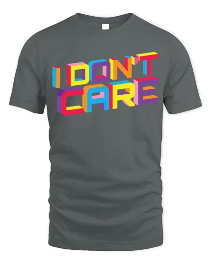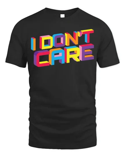 I Don’t Care Retro 3D Block Letter Graphic Tee Shirt