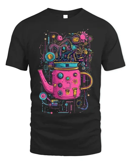 Steampunk Teapot Machine Graphic T-Shirt – Sci-Fi Art