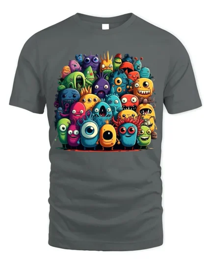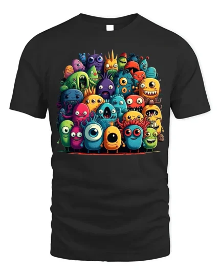 Cute Monster Crowd Graphic T-Shirt – Cartoon Creatures