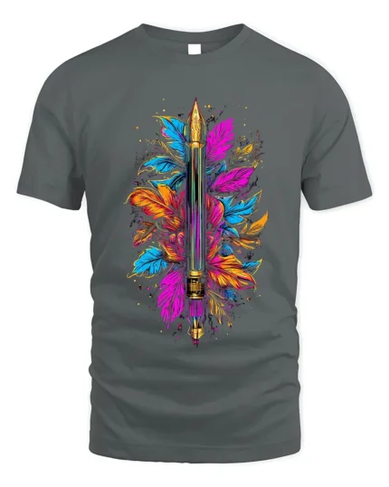 Fountain Pen & Colorful Feather Graphic T-Shirt