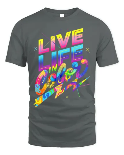 Live Life In Color Bright Positive Retro Graphic T-Shirt