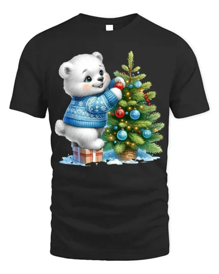 Cute Bear Decorating Christmas Tree Winter Holiday Tshirt