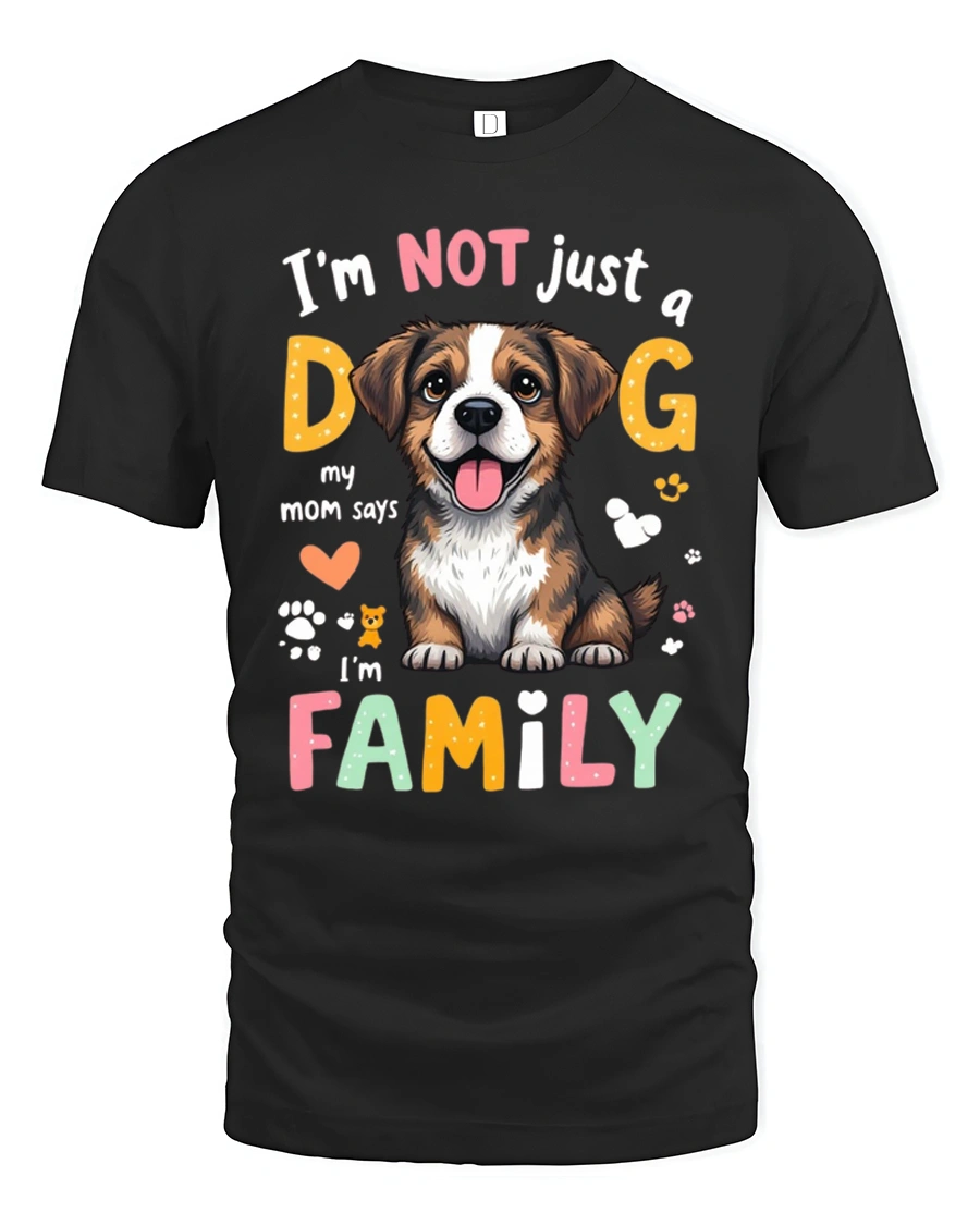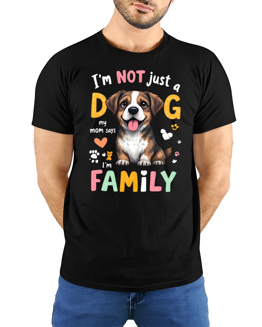 Im Not Just A Dog Im Family Cute Puppy T Shirt celebrates the unbreakable bond between pets and the people who love them. Featuring an adorable smiling puppy surrounded by colorful playful lettering, this design shares a heartfelt message that every dog owner understands. The cheerful artwork and bright details create a warm and joyful look that instantly spreads positive vibes.