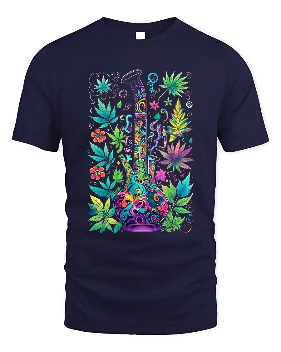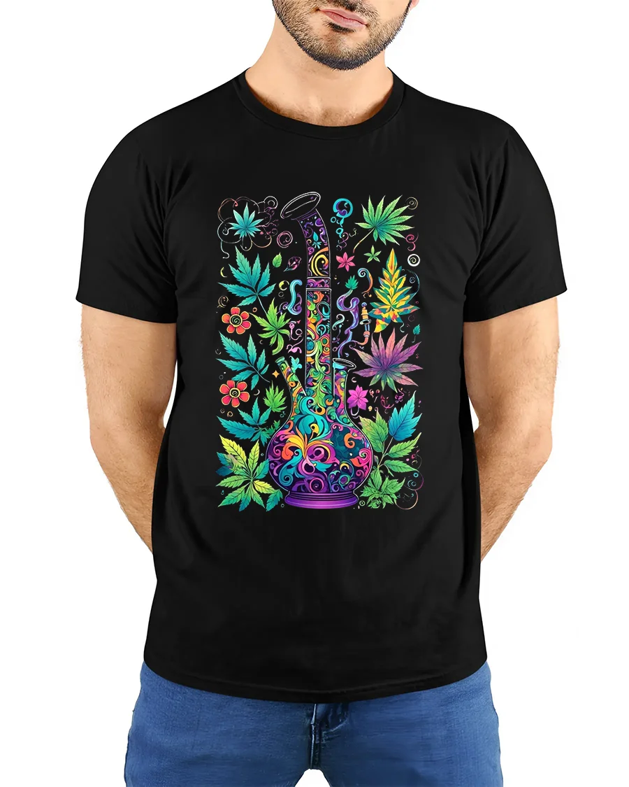 Psychedelic Bong and Leaf Art Graphic T-Shirt Unisex Style
