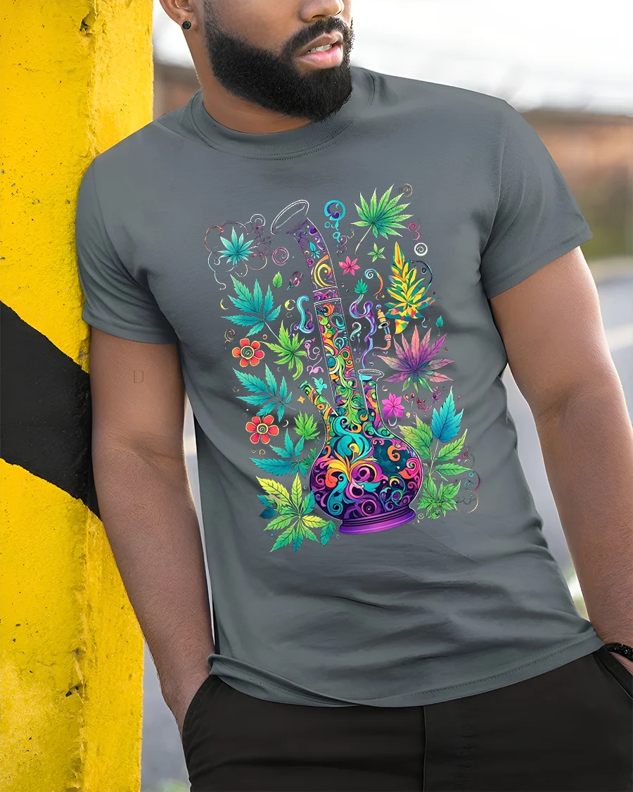 Perfect for men and women who love originality and good energy, this bong and leaf t-shirt is ideal for casual days, music festivals, or creative streetwear looks. Pair it with jeans, shorts, or layered accessories to create your own statement style. Celebrate freedom, creativity, and good vibes with this one-of-a-kind graphic tee that brings art and attitude together.