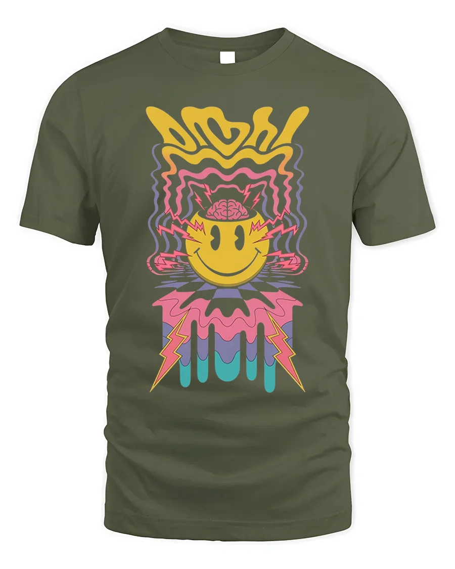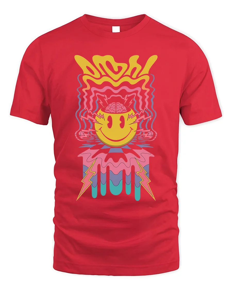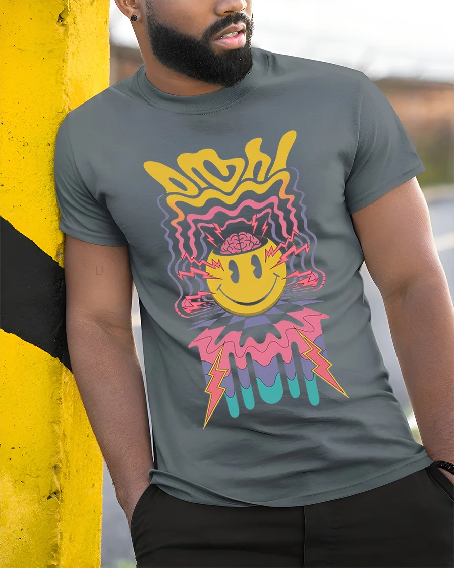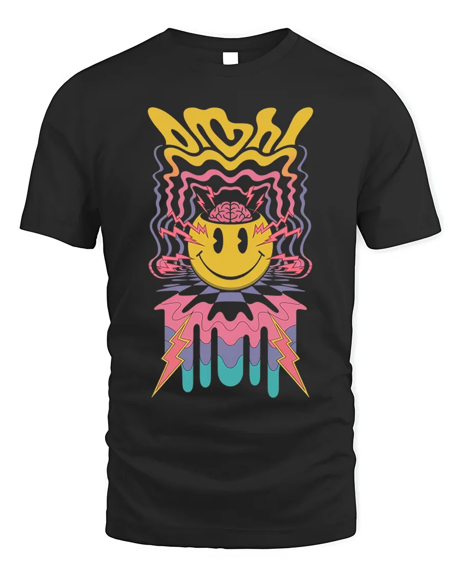 The Psychedelic Smiley Face Lightning Art Graphic T-Shirt is a bold and vibrant celebration of retro energy and modern creativity. Featuring a trippy yellow smiley face with lightning bolts and colorful waves radiating from the design, this tee captures the electric feel of psychedelic art and 90s rave culture. Its melting, wavy lines and neon tones bring a nostalgic yet fresh vibe that instantly stands out.