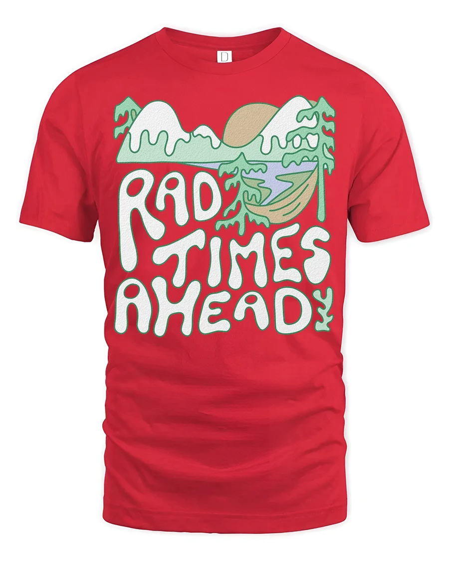 Rad Times Ahead Camping T Shirt Retro Nature Adventure Tee - red t-shirt on white background