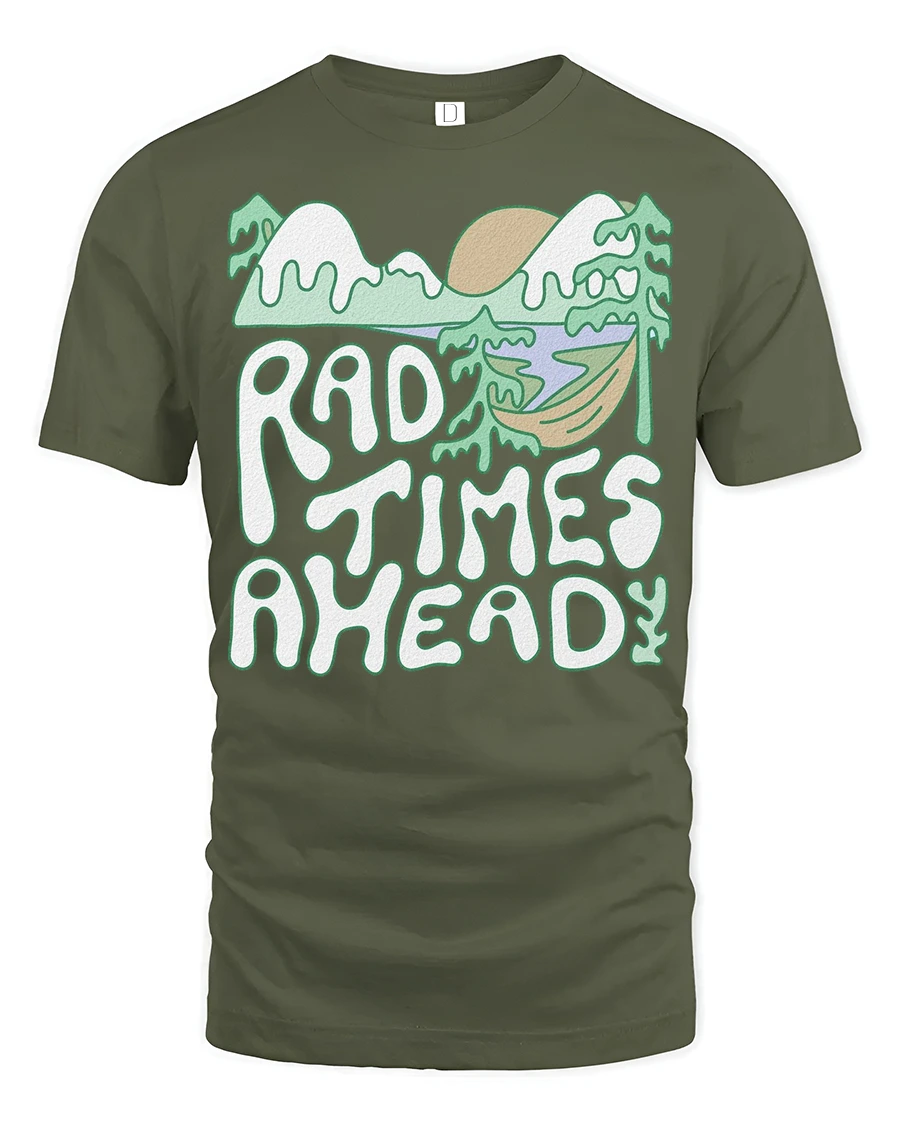 Rad Times Ahead Camping T Shirt Retro Nature Adventure Tee - military green t-shirt on white background