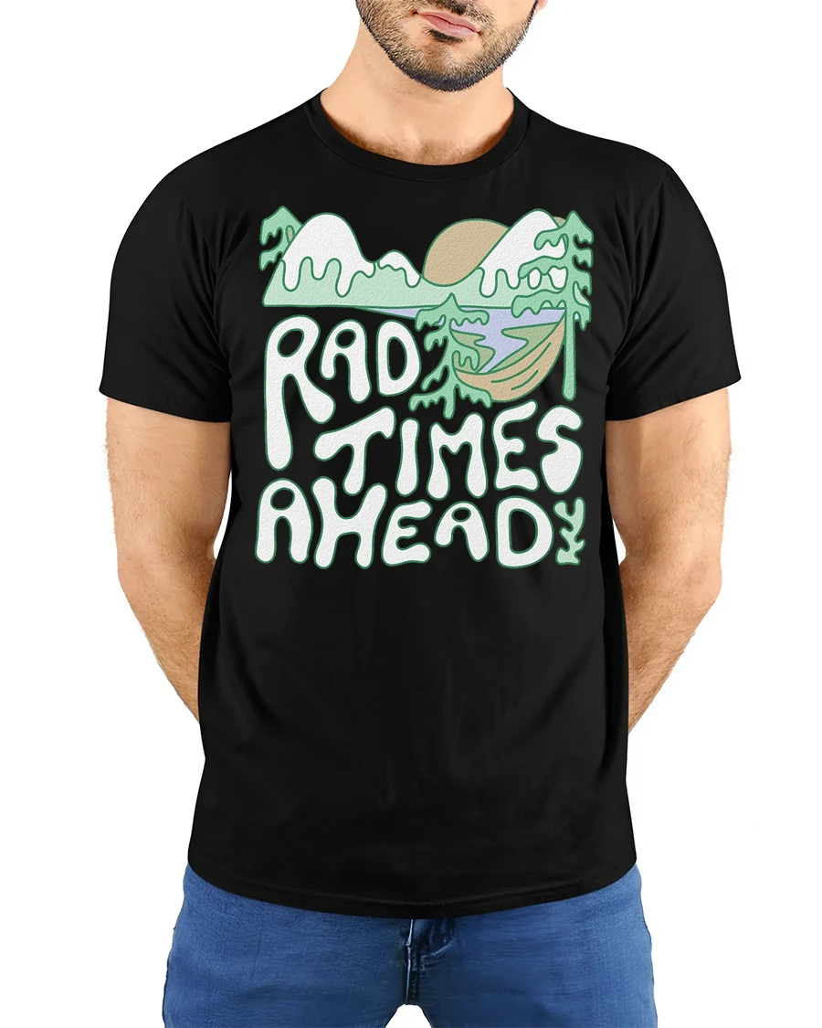 Rad Times Ahead Camping T Shirt Retro Nature Adventure Tee brings a playful and uplifting vibe to your everyday style.