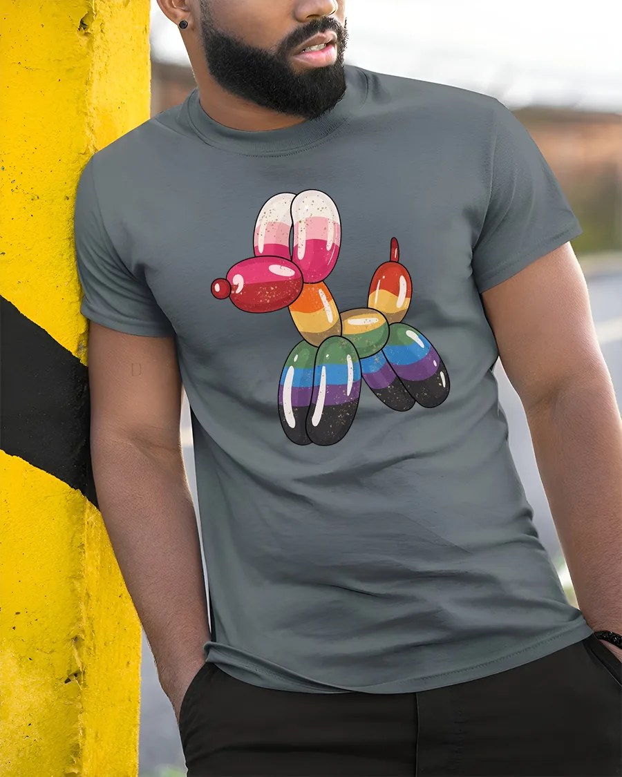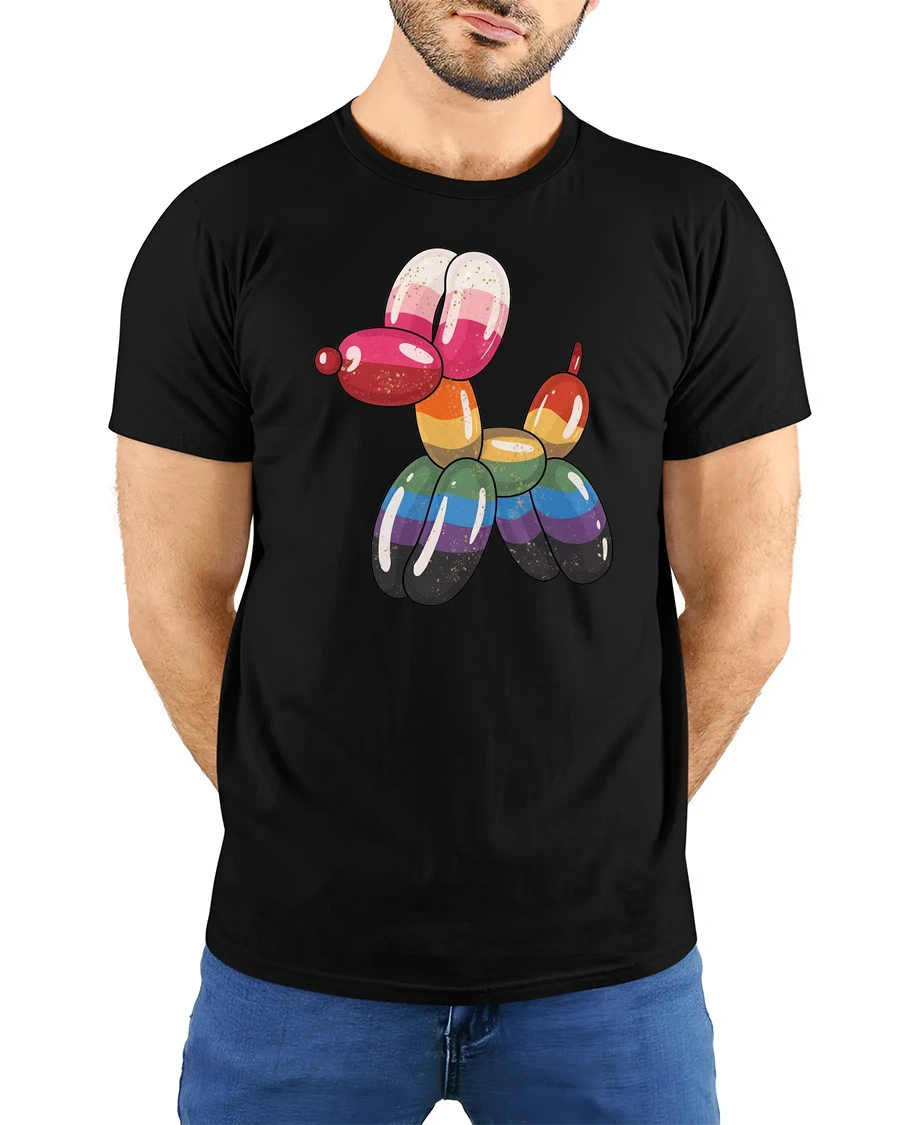 Rainbow Balloon Dog Graphic T Shirt Colorful Cute Art Tee brings a playful and vibrant twist to everyday style.