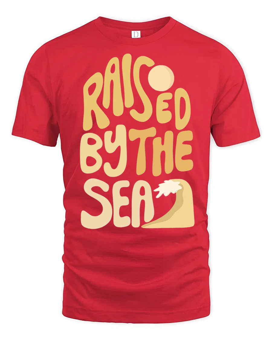 Raised By The Sea Beach Lover Graphic Tee Coastal Style - red t-shirt on white background
