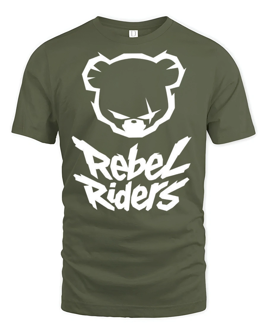 Rebel Riders Bear Graphic T Shirt Streetwear Bold Urban Style Tee - military green t-shirt on white background