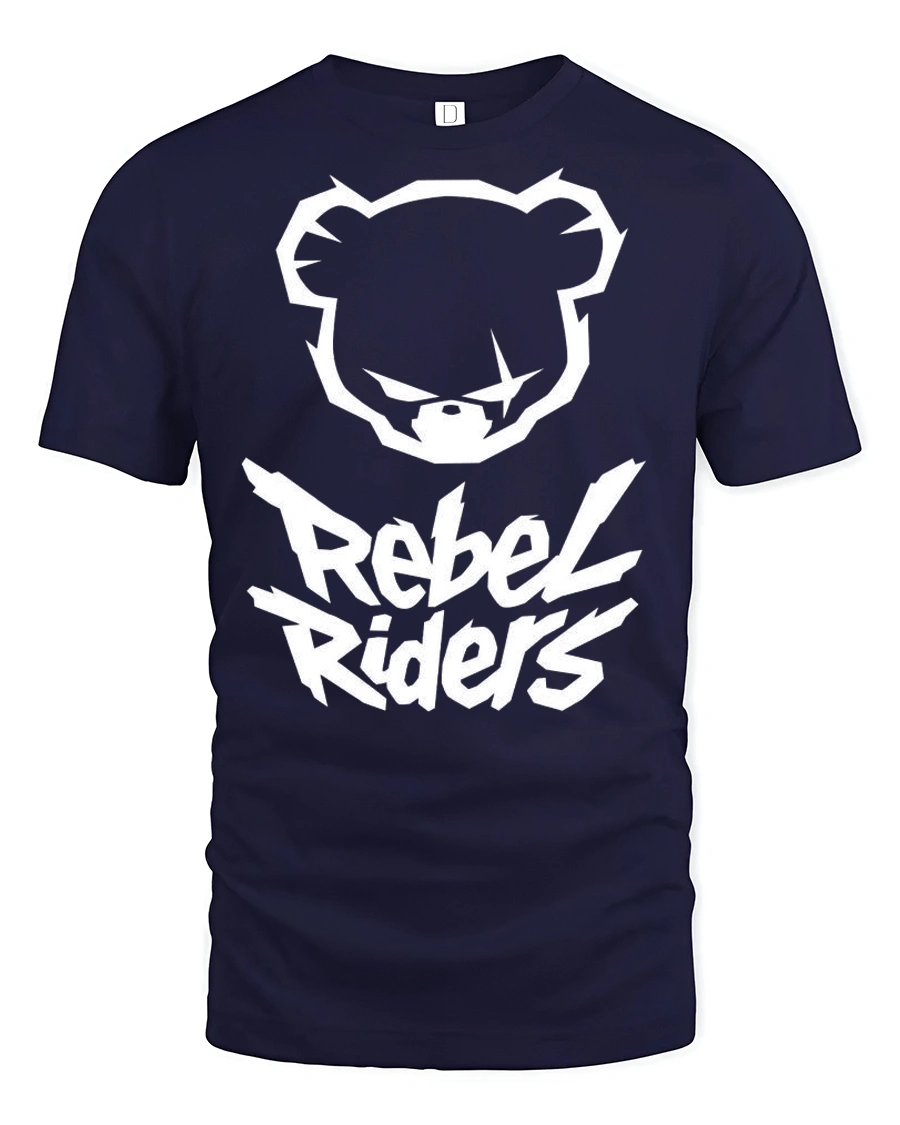 Rebel Riders Bear Graphic T Shirt Streetwear Bold Urban Style Tee - navy t-shirt on white background