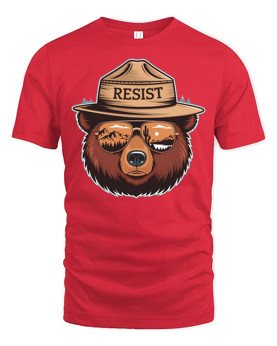 Resist Bear Graphic Tee Nature Lover Adventure Style Tshirt - red t-shirt on white background