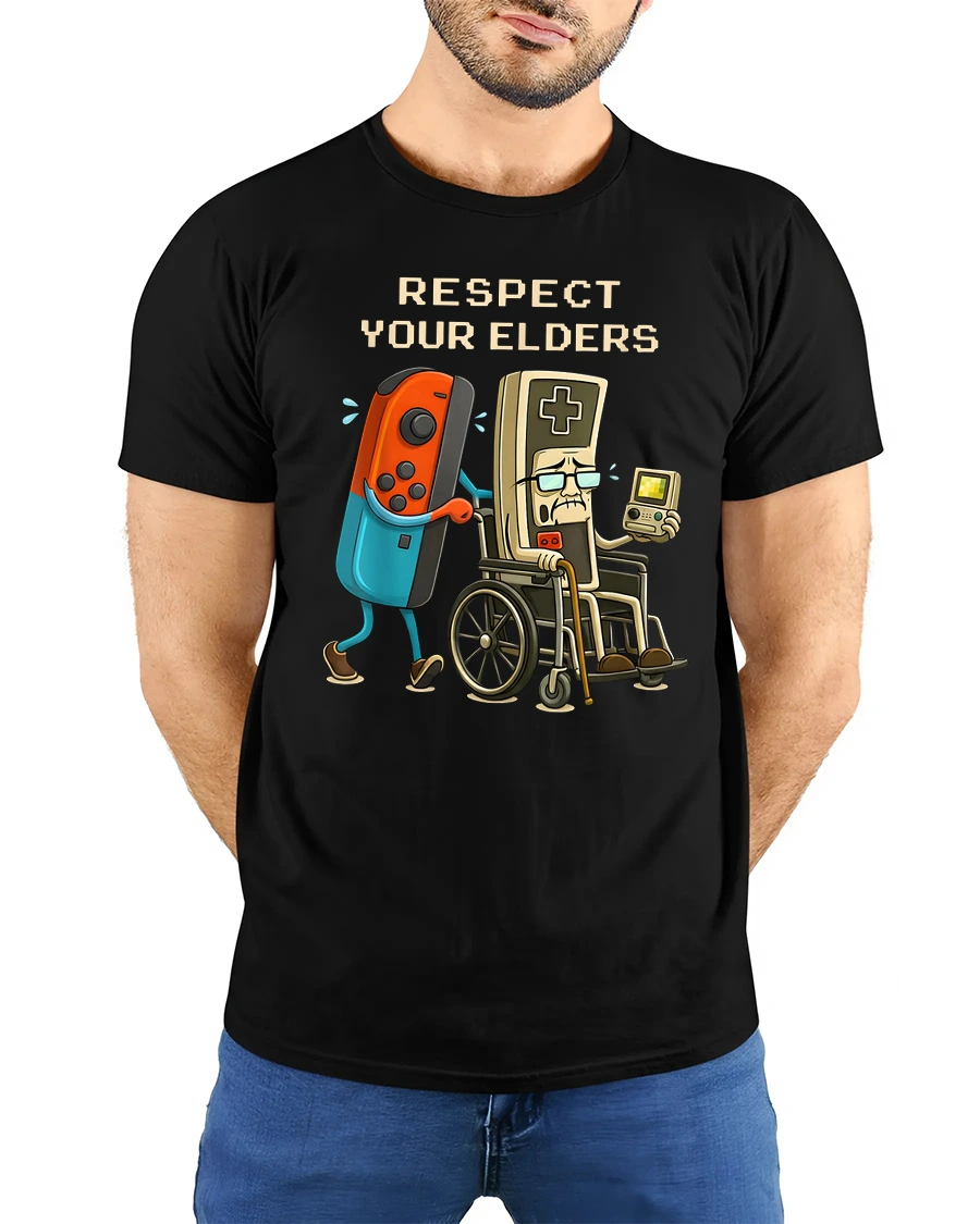 Respect Your Elders Retro Gaming Humor Graphic T Shirt Gamer Tee