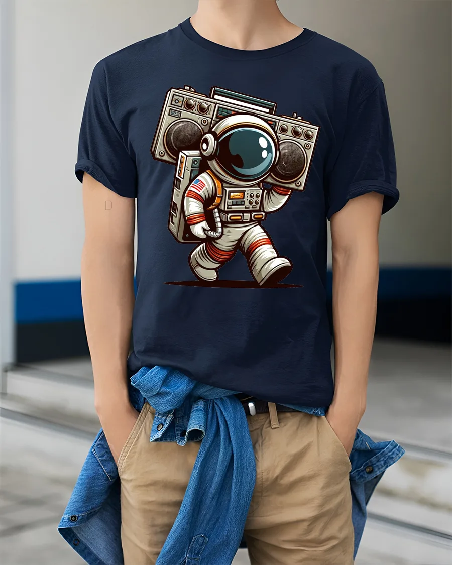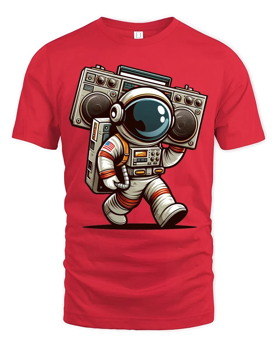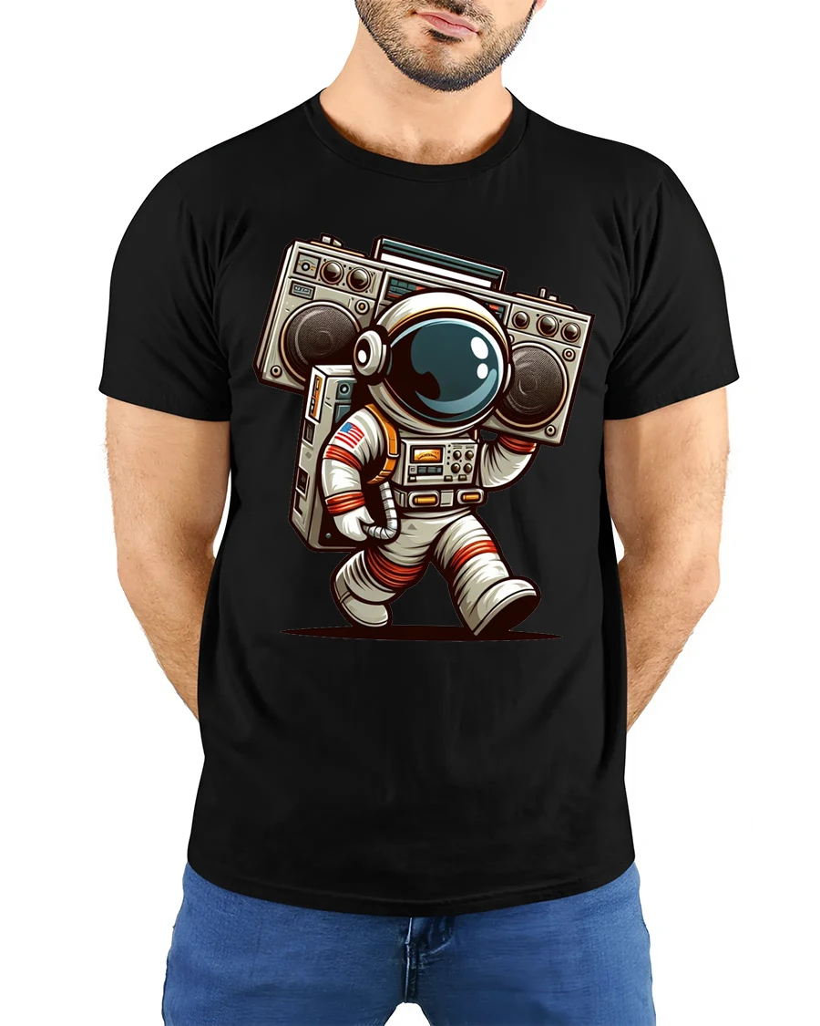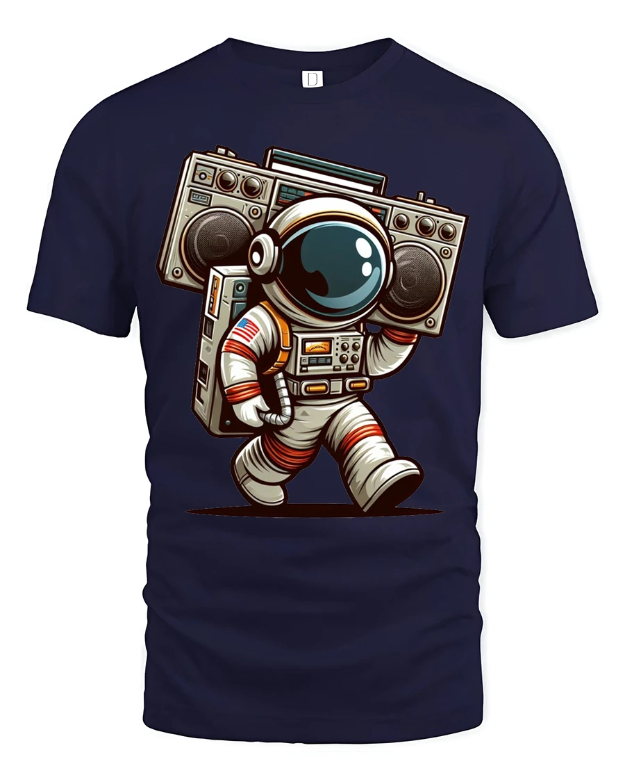 Retro Astronaut Boombox Tshirt Cool Space Music Graphic combines vintage music culture with imaginative space exploration style.