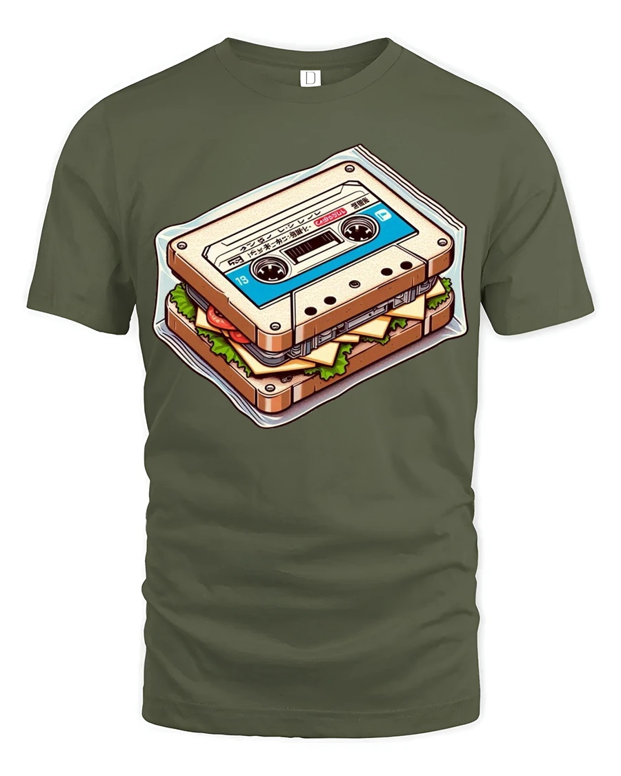 Retro Cassette Sandwich Funny Vintage Food Music T Shirt - military green t-shirt on white background